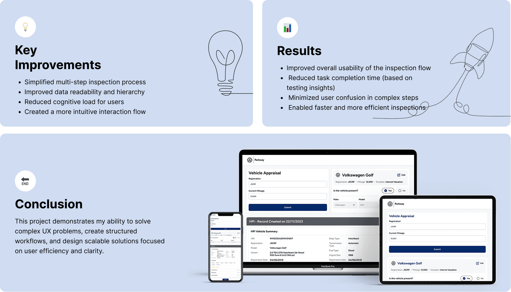 The goal was to simplify the inspection workflow, improve clarity of information, and enable users to complete tasks faster with fewer errors.